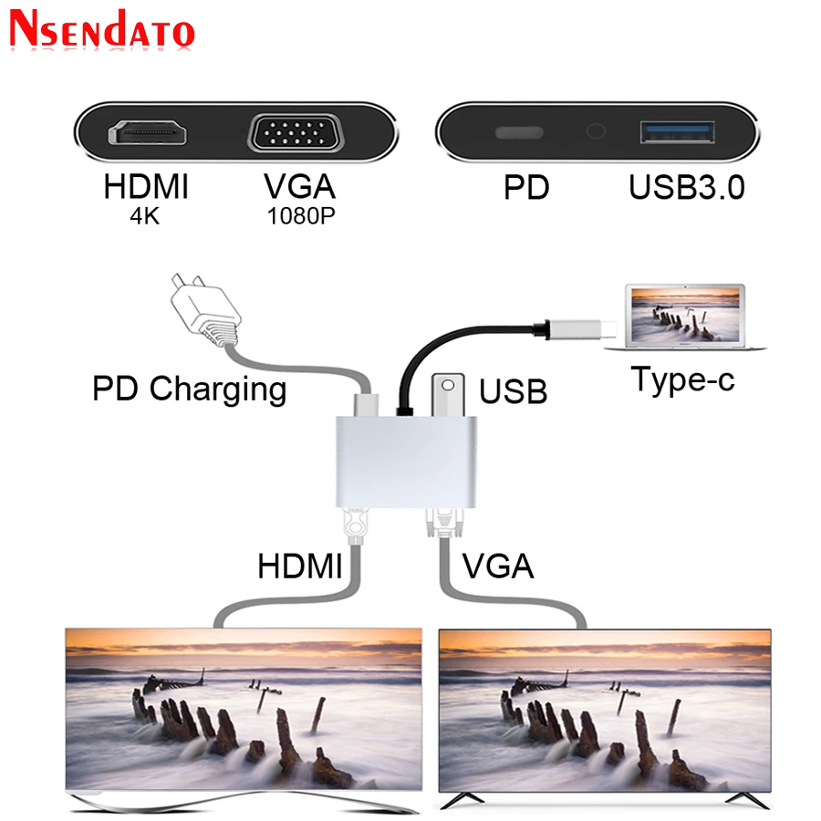 Special Price of 4 in 1 4K Multi USB Type C HUB to USB 3.0 HDMI VGA PD Charger Docking station Adapter for MacBook N